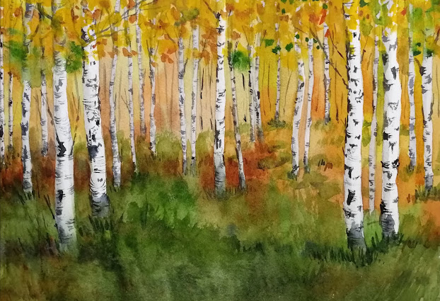 | "HAYEDO DE LA "TEJERA NEGRA" EN OTOÑO" acuarela, hecha a mano, 40x30 cm. |
